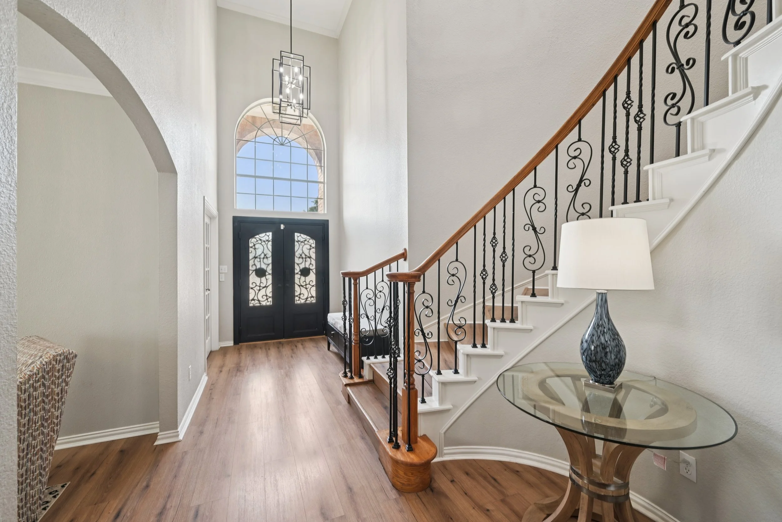 Stunning Custom Home in Sought-After Lakefront Community! Located in a highly desirable lakefront community within walking distance to the lake, parks, scenic walking trails, and local restaurants, this beautifully renovated 5-bedroom home offers the perfect blend of luxury and lifestyle. Fully updated in 2022, the home welcomes you with elegant iron double doors that open to a grand staircase accented by wrought-iron spindles. The thoughtful floorplan features the primary suite and an additional bedroom downstairs, while upstairs you’ll find a spacious game room and three generous secondary bedrooms. Designed for entertaining, the home has a 30x16 covered back porch with motorized screens—ideal for hosting gatherings or simply relaxing outdoors. Every detail has been carefully crafted, making this home a rare find in a vibrant lakefront setting.